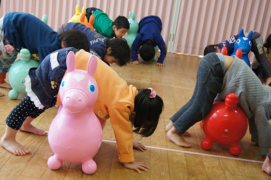 冬は、普段に増して運動不足になりがちな季節です。外に出られないキッズ達は体力を持て余し、親御さんはその対応に一苦労というお話をよく耳にします。保育園でのレッスンと違って、キッズパークの様な施設での開催は、パパやママと一緒に室内運動のきっかけづくりをすることが、大きな目的ともなっています。この日も、元気な子どもたちと親御さんと楽しいひと時を過ごしました。