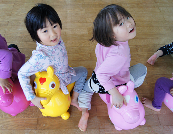 今回レッスンを受けてくれた3歳のキッズたちにとって、自分と同じ大きさほどのロディを持ち上げるのも大仕事となります。私たちの心配をよそに、真剣なまなざしで、講師の話にしっかりと耳を傾け、最後までひたむきにヨガ運動に励んでくれました。園の先生たちも、その様子には大変驚かれていたようです。