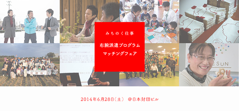 東北の復興や事業を担うリーダーの「右腕」となるボランティア人材を派遣する「右腕プログラム」のイベント「みちのく仕事 右腕派遣プログラムマッチングフェア」が6月28日(土)に開催されます。